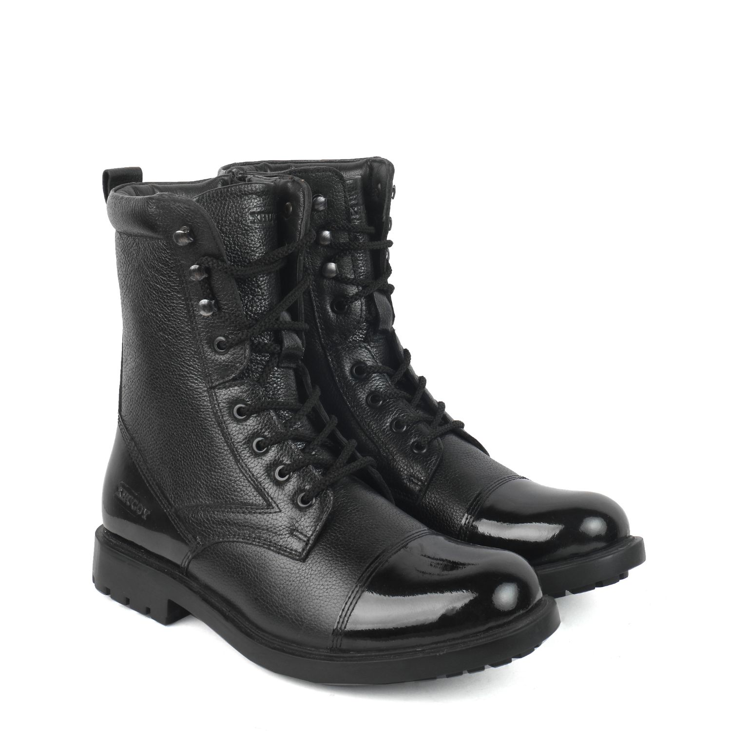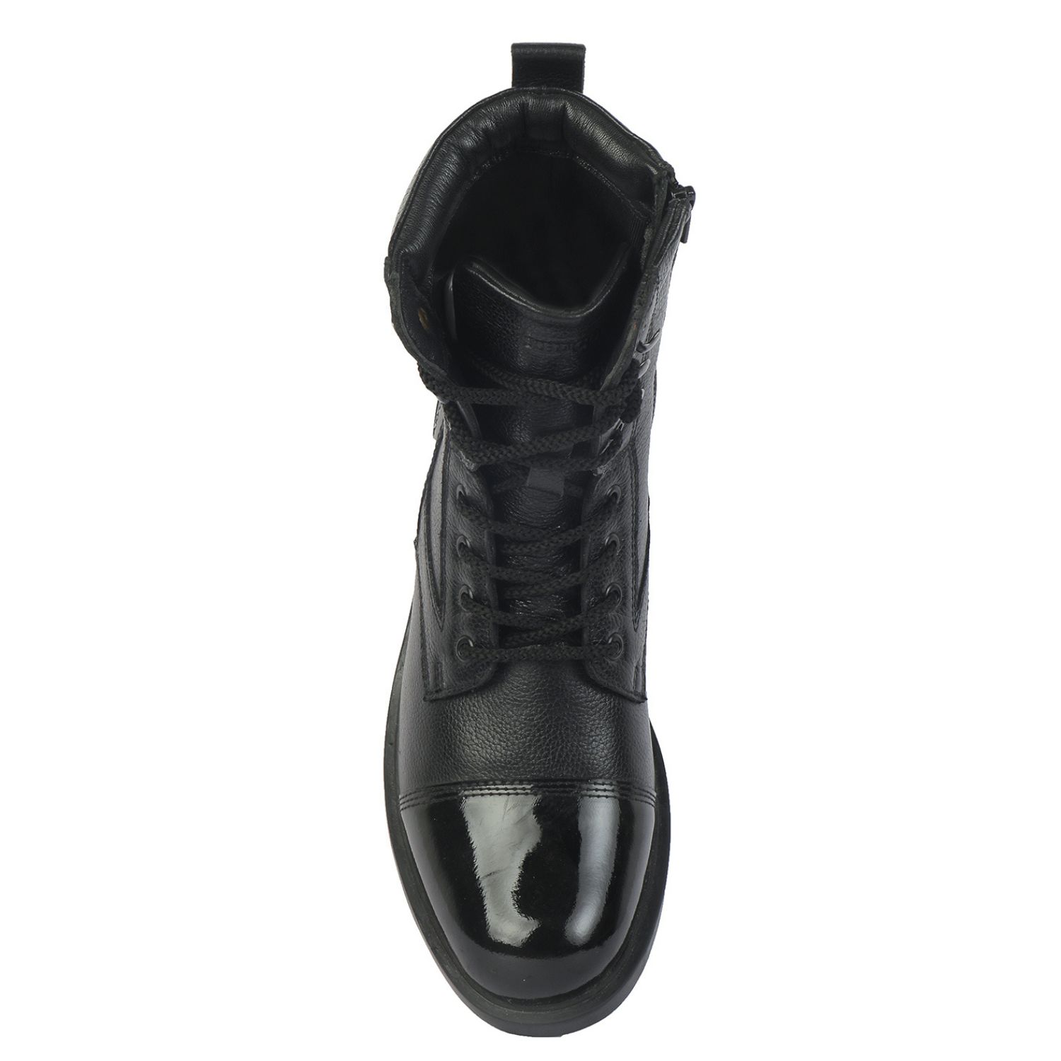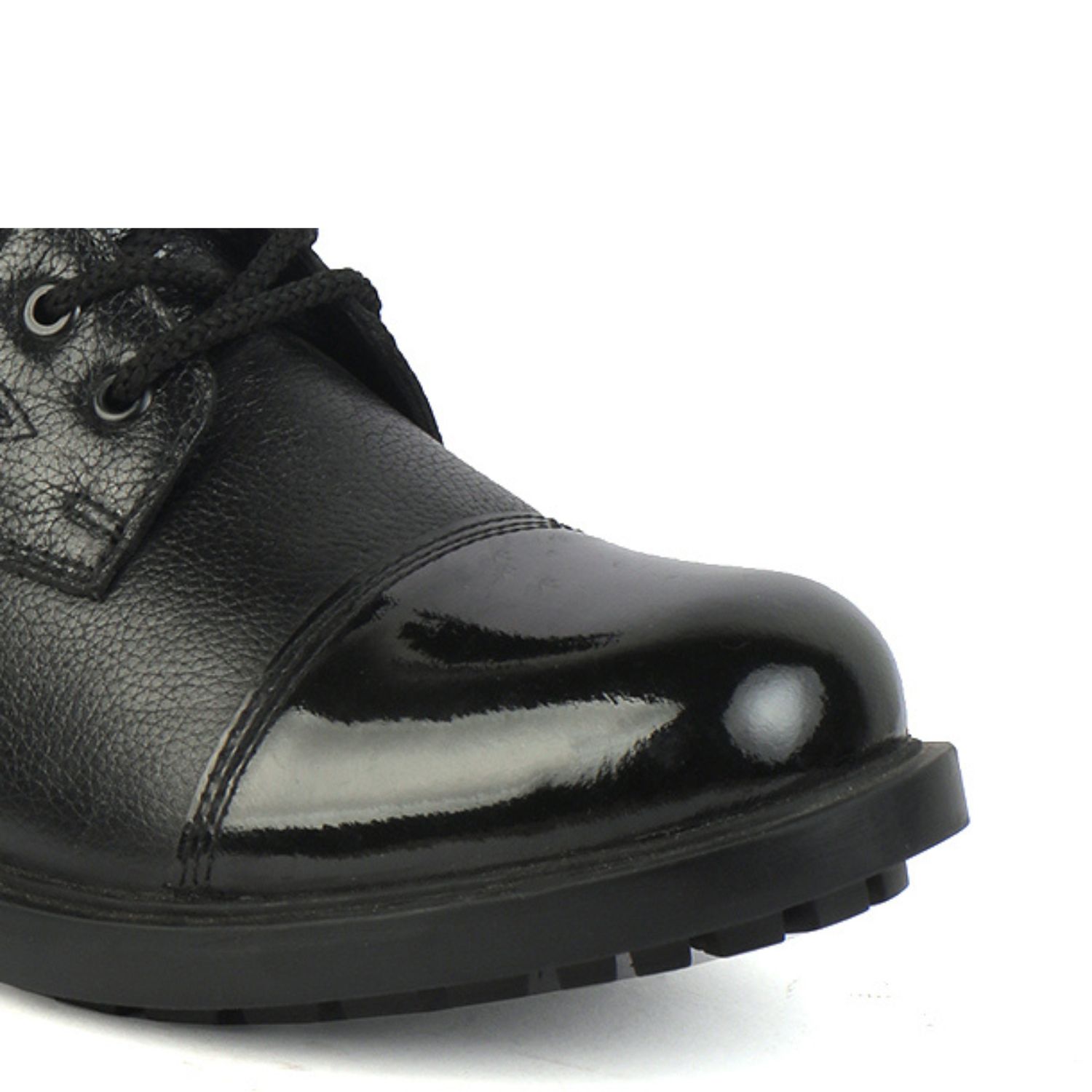 XHUGOY AR-2 Black Patent Toe Genuine leather Military Men’s Combat Boots -High Ankle – High Top Lace
