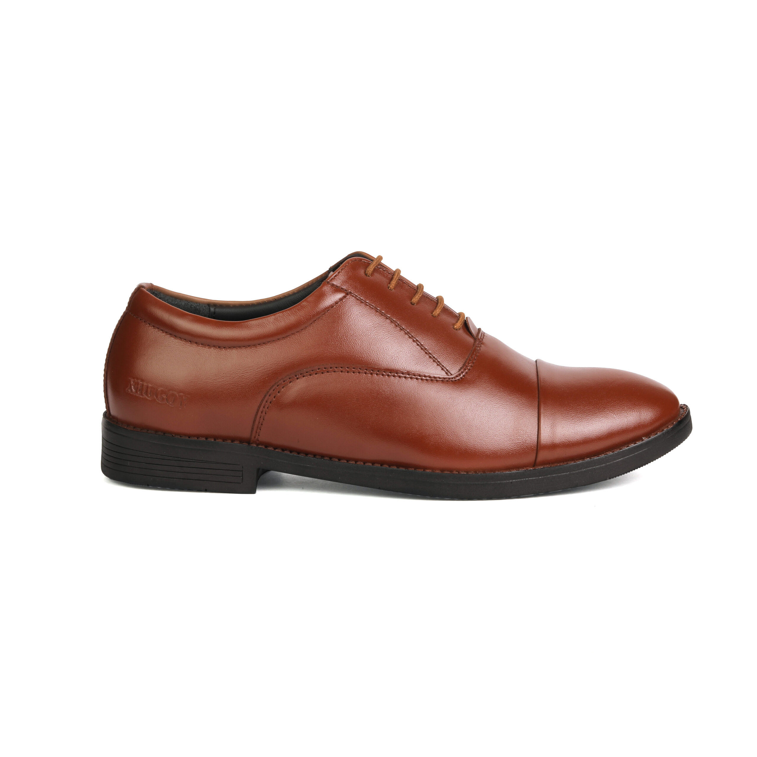 XHUGOY MEDIUM LEATHER RANGE POLICE OXFORD SHOE FOR MEN IN BLACK N TAN (RED) COLOUR 8017