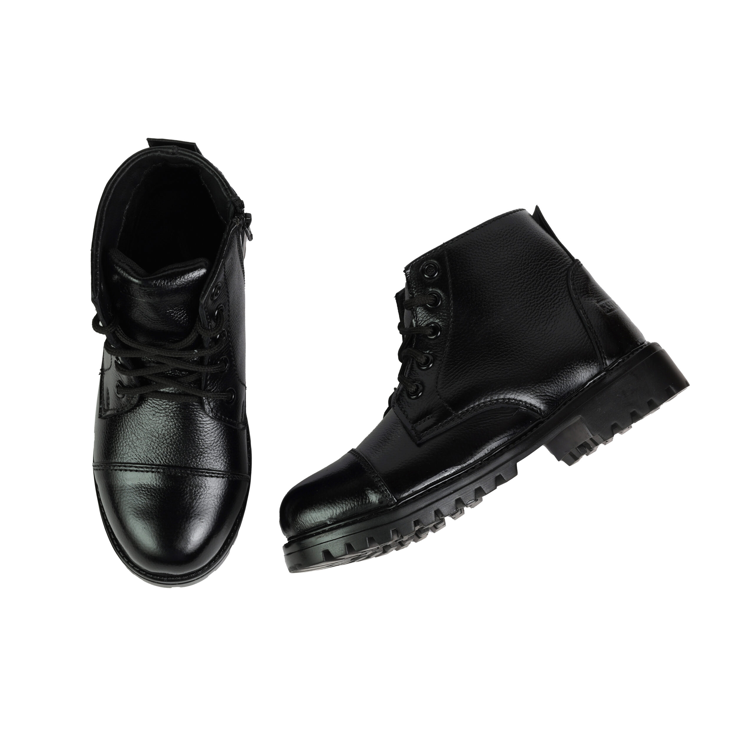 XHUGOY MEDIUM RANGE LACE-UP CHAIN COMBAT POLICE DMS BOOT BLACK SIZE 2-5 FOR MEN