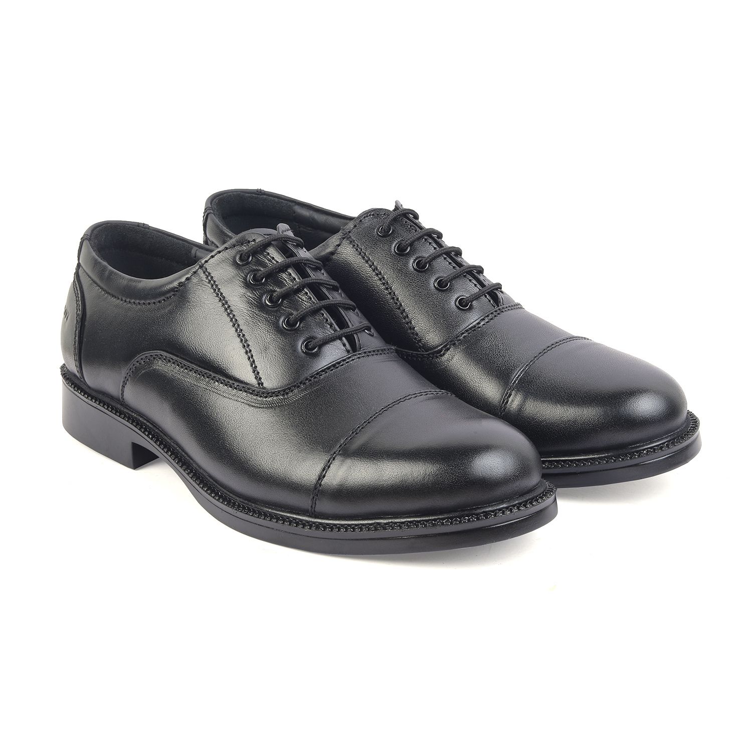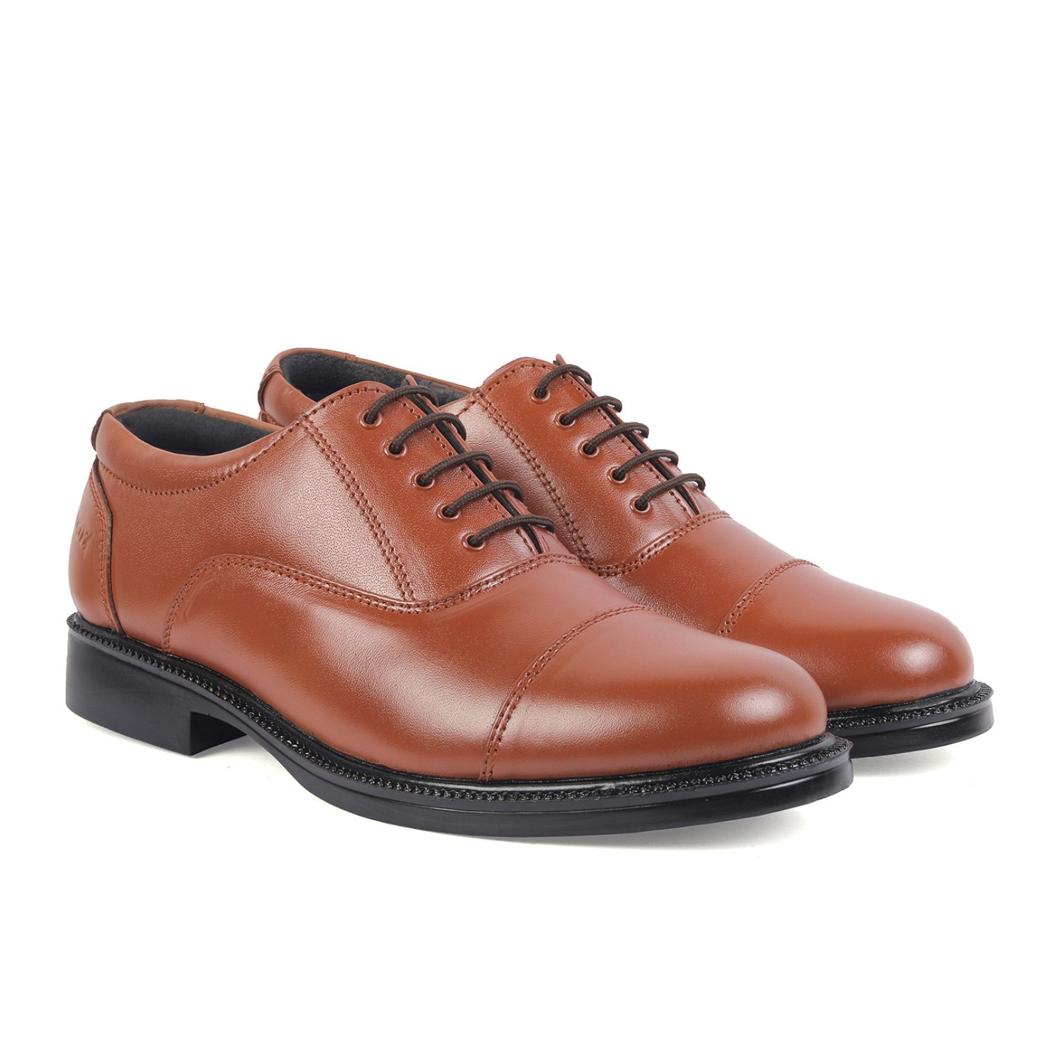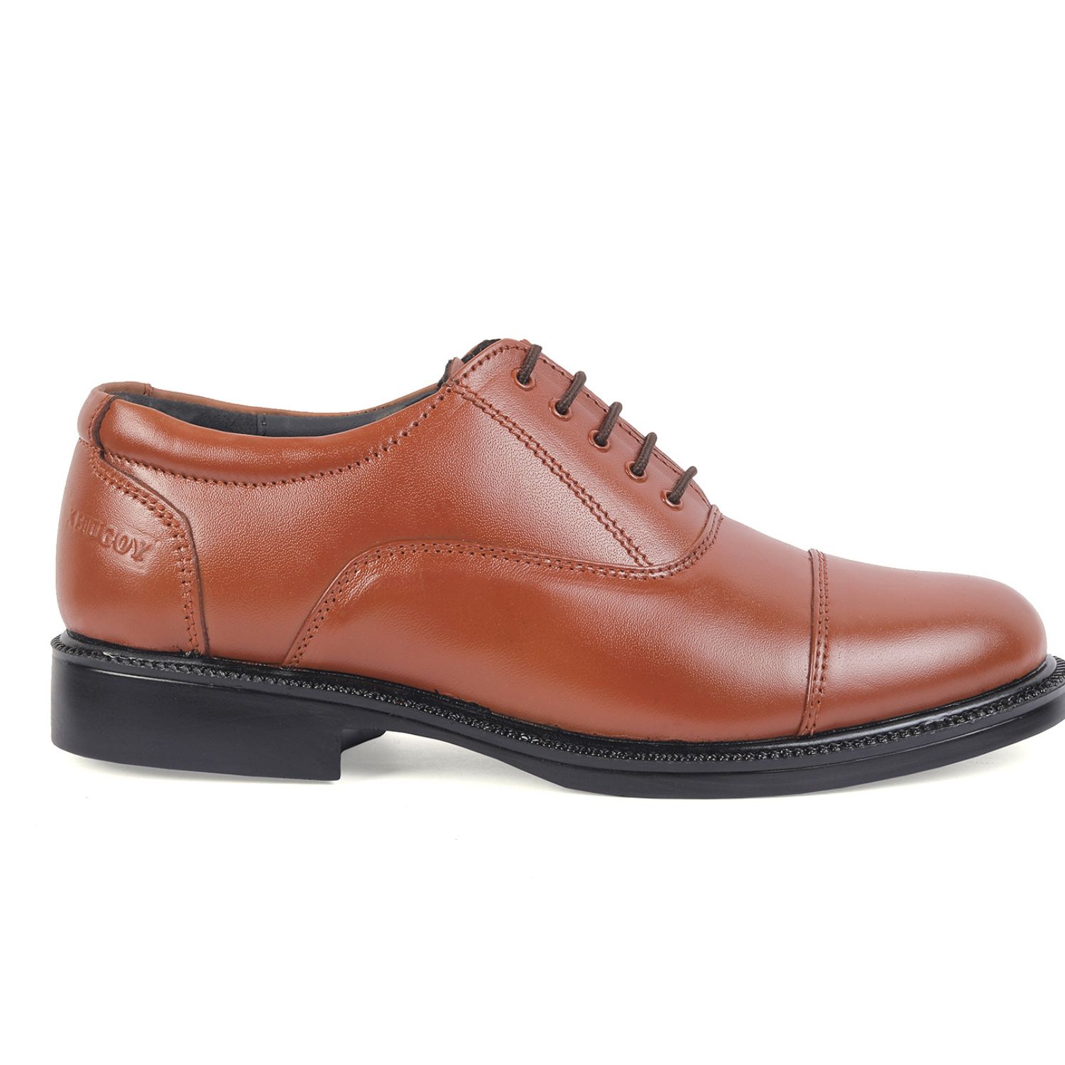 XHUGOY MEDIUM RANGE POLICE OXFORD COMPLETE-LEATHER SHOE FOR MEN IN BLACK N TAN (RED) COLOUR