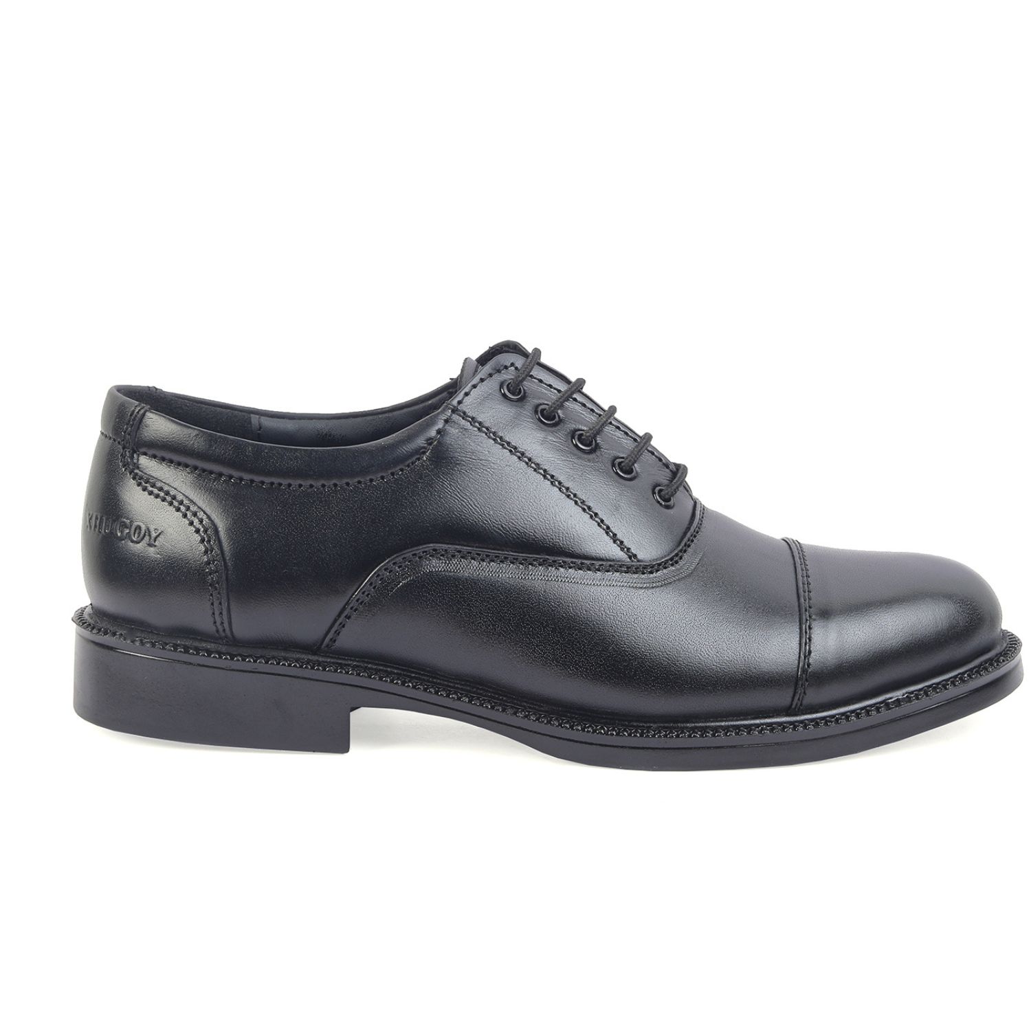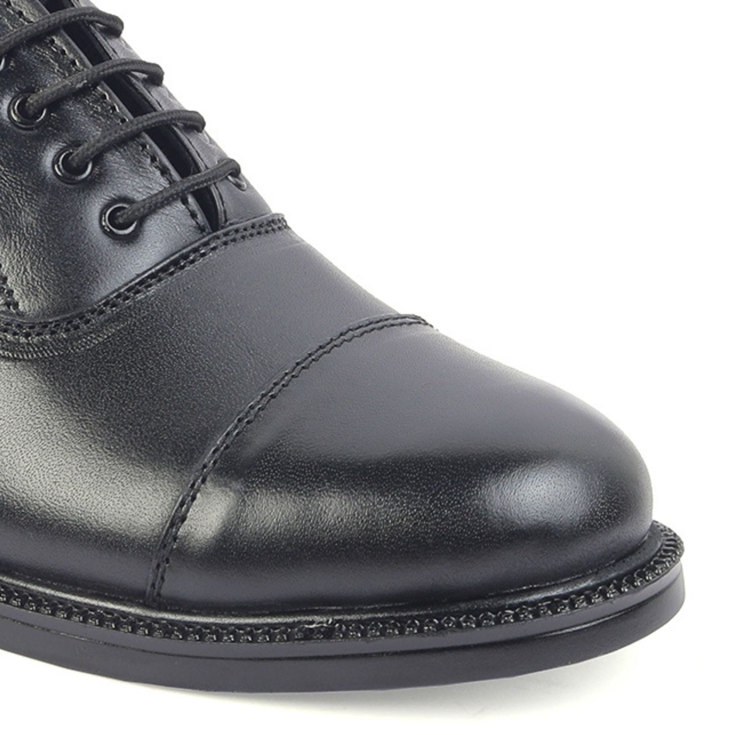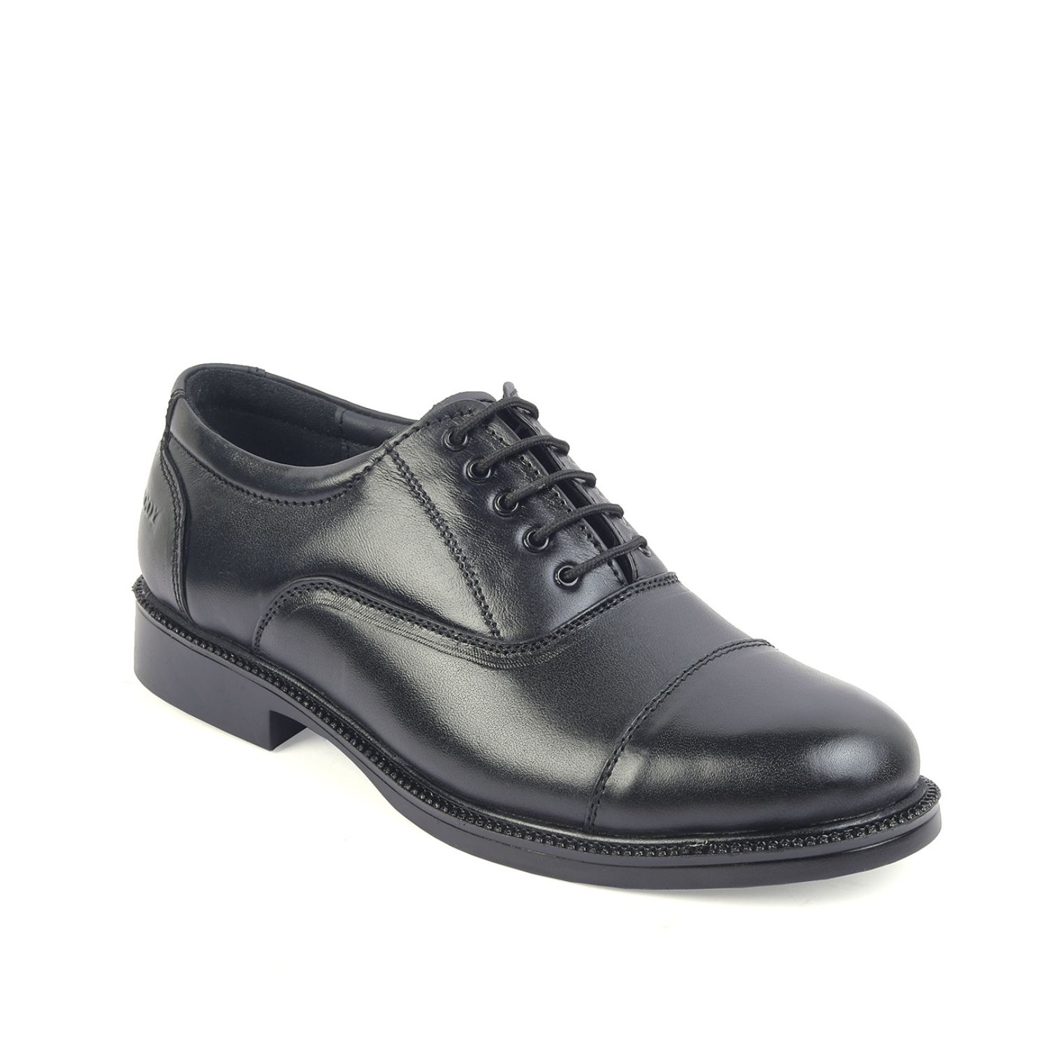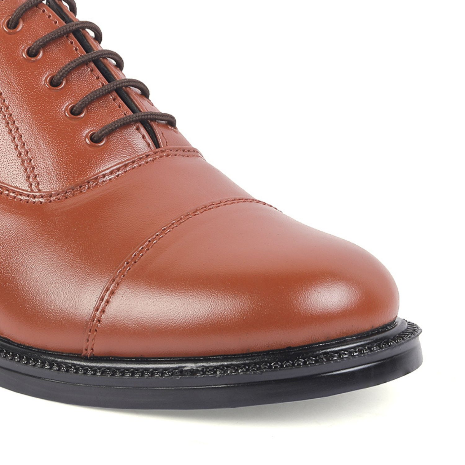 XHUGOY MEDIUM RANGE POLICE OXFORD COMPLETE-LEATHER SHOE FOR MEN IN BLACK N TAN (RED) COLOUR